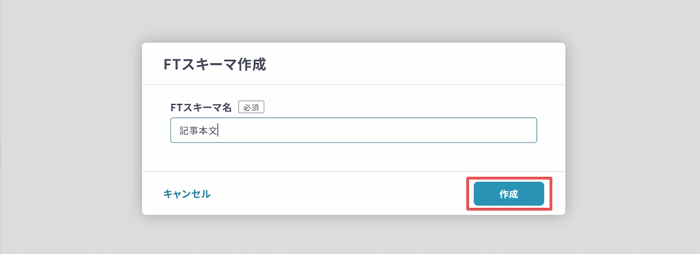 任意のFTスキーマ名を入力したら、[作成]ボタンをクリックしてください。