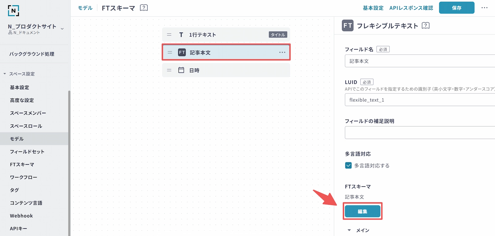 FTスキーマの[編集]をクリックすると該当FTスキーマの設定画面に遷移し、編集を開始できます。