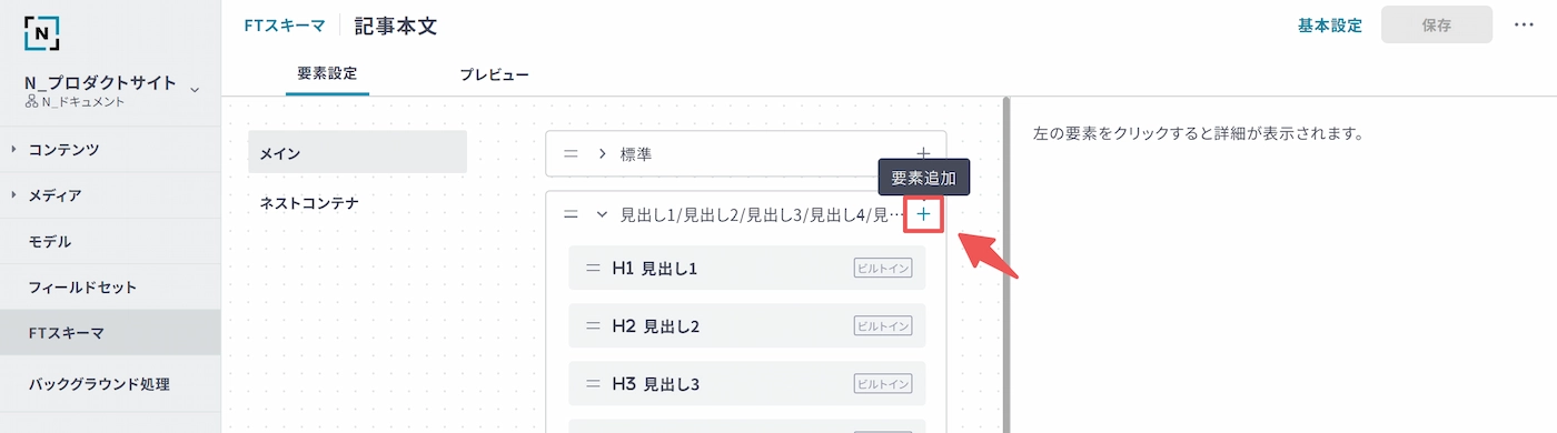 設定済みの要素を選択すると、詳細設定が表示されます。