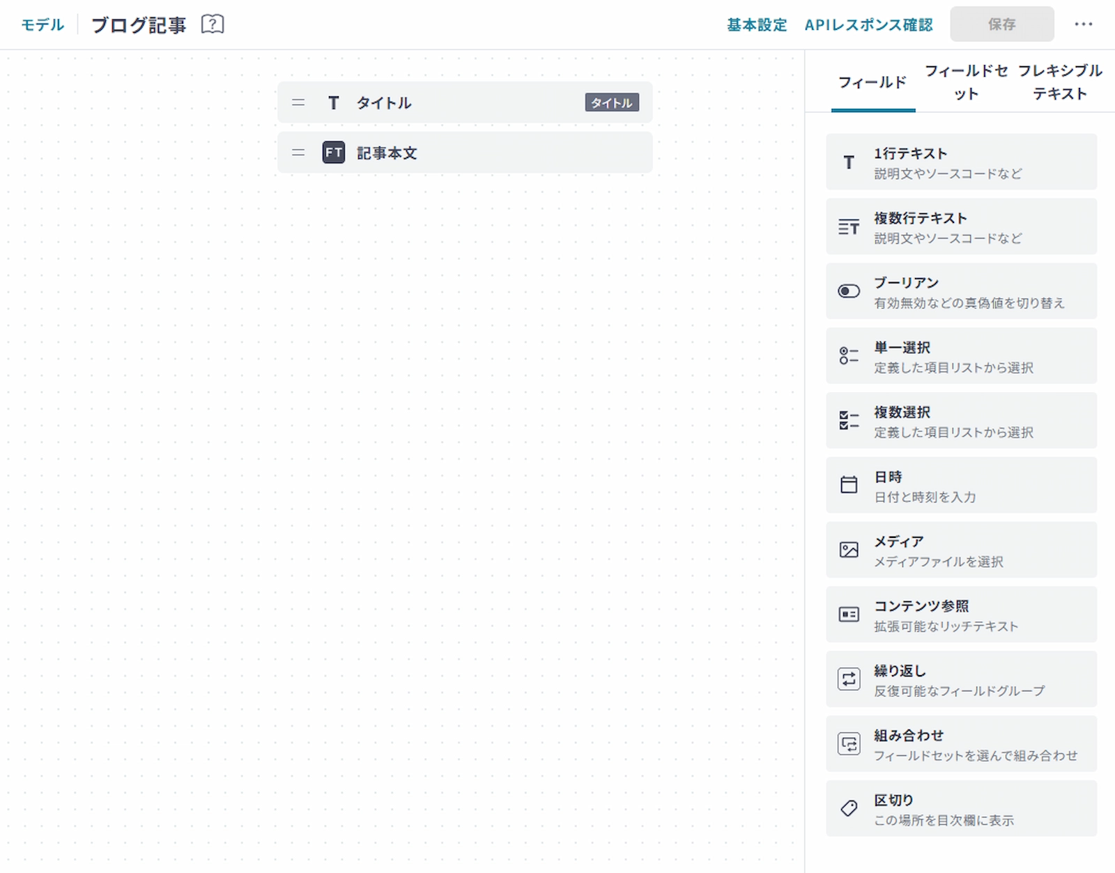今回はブログサイトのブログ記事を複数入稿します。NILTOのスペースとモデルを以下のように設定します。