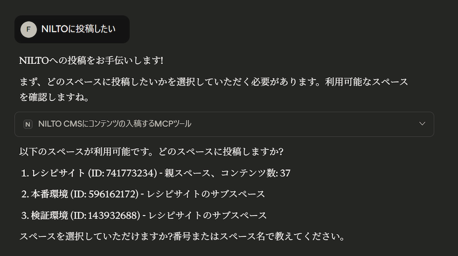 Claude DesktopからNILTO MCPでブログサイトスペースを操作できるようにします。