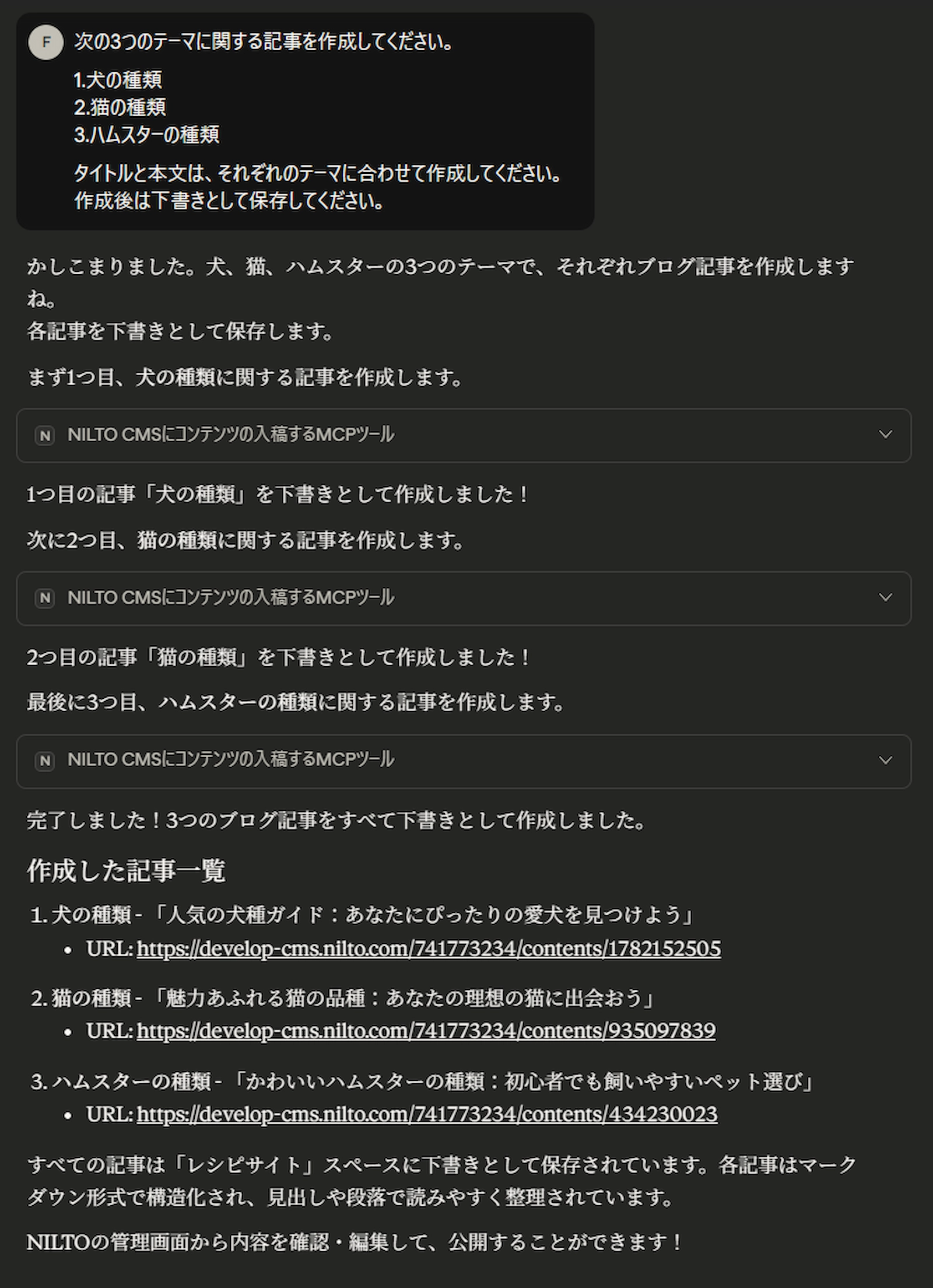 このチュートリアルではNILTO MCPを活用して、Claude Desktopからプロンプト指示でAIを使って生成したMarkdown原稿を下書き入稿する手順を紹介します。
