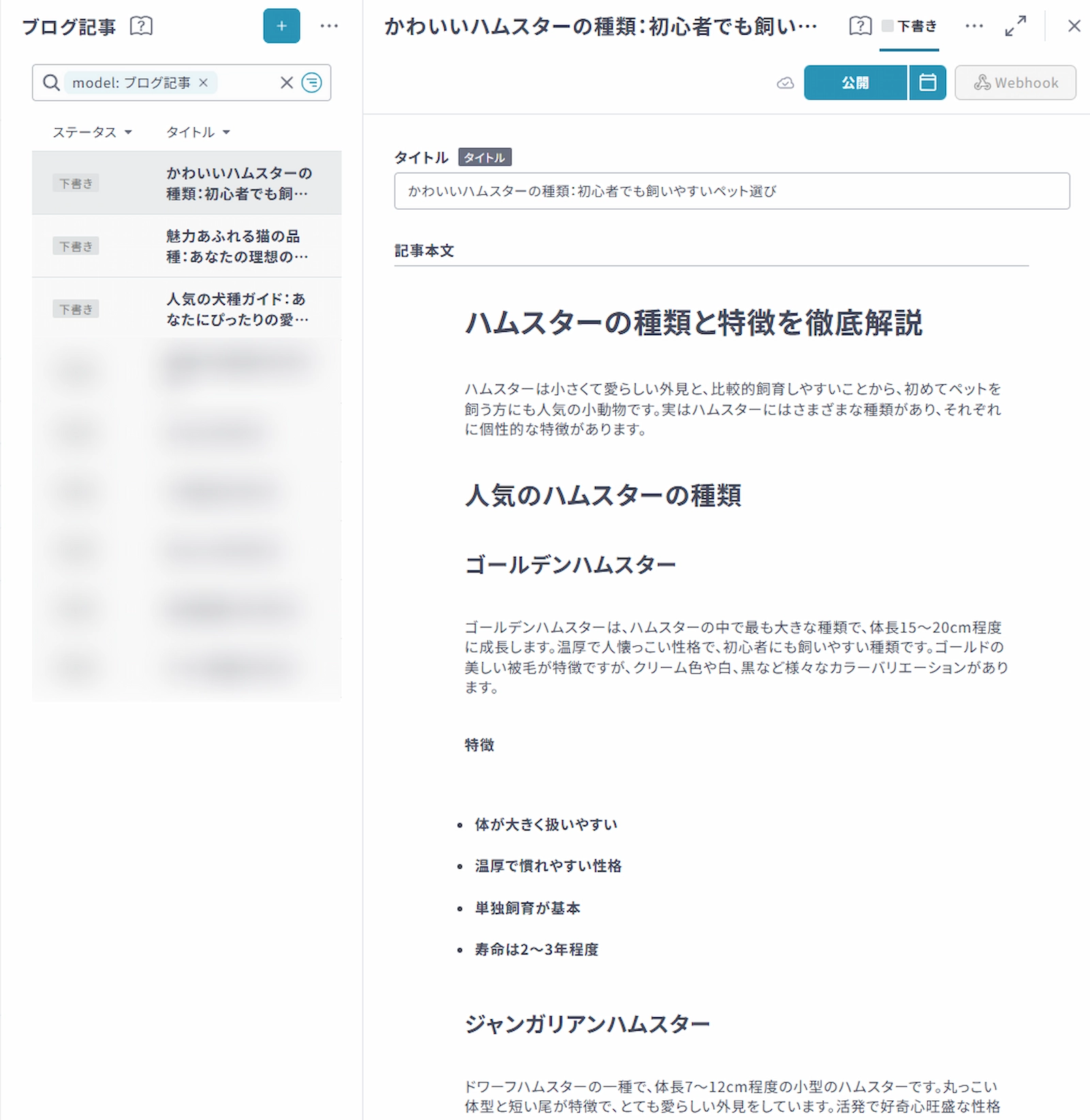 以上でコンテンツが3つ作成されました。コンテンツ詳細画面へのリンクが表示されますので、それぞれ開いて下書きを確認できます。