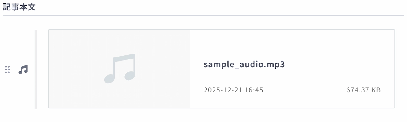 NILTOにアップロードした音声メディアを、audioタグとして出力することができます。