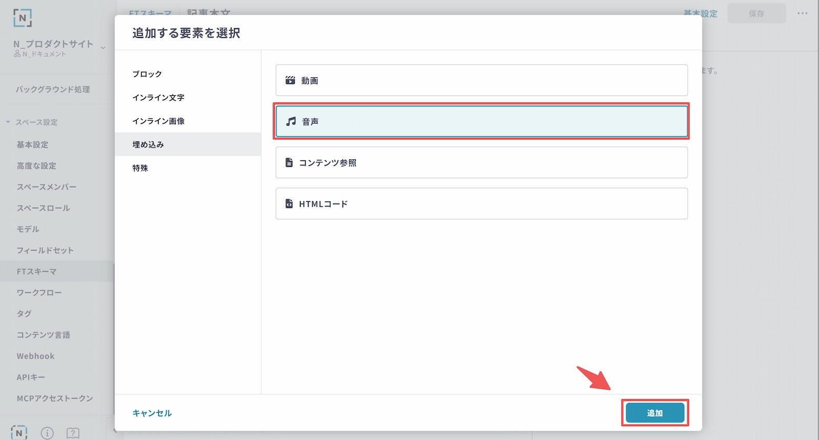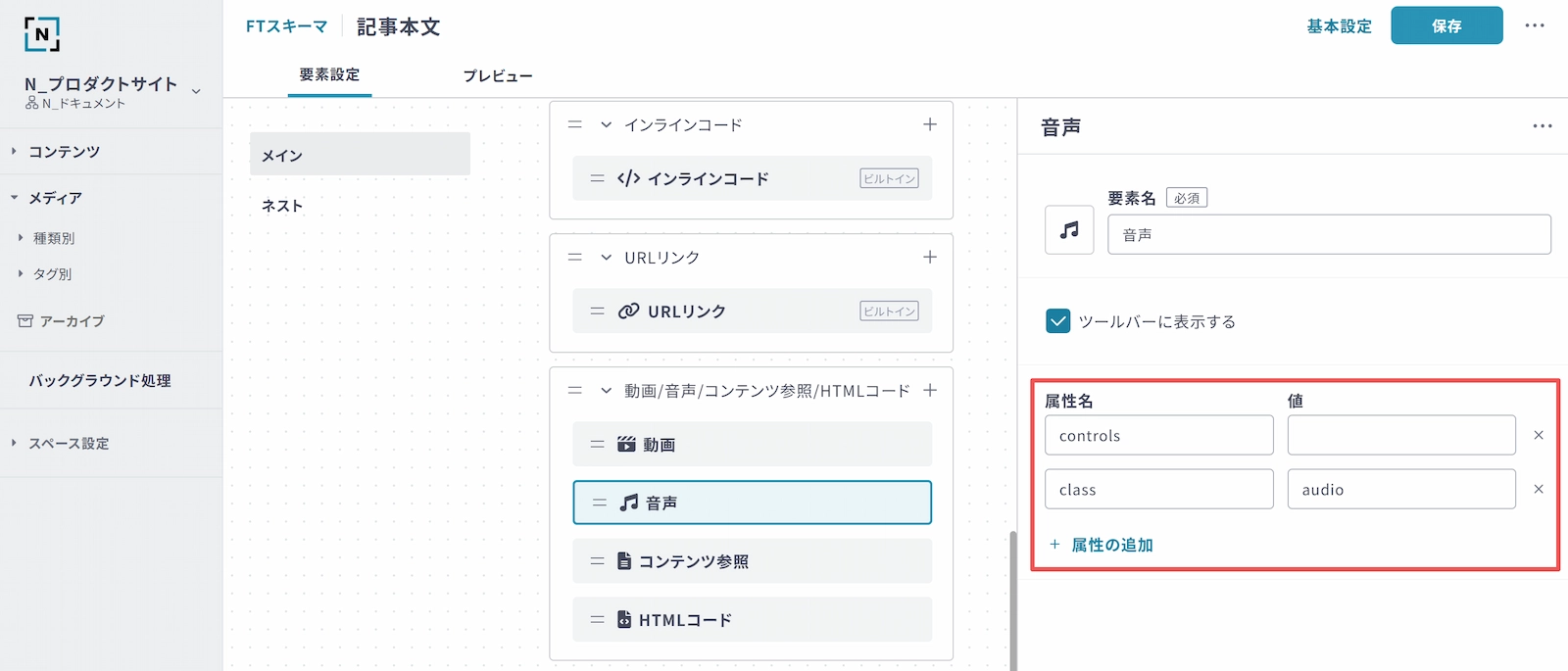 FTスキーマの設定画面から「音声」をアドオンして利用してください。