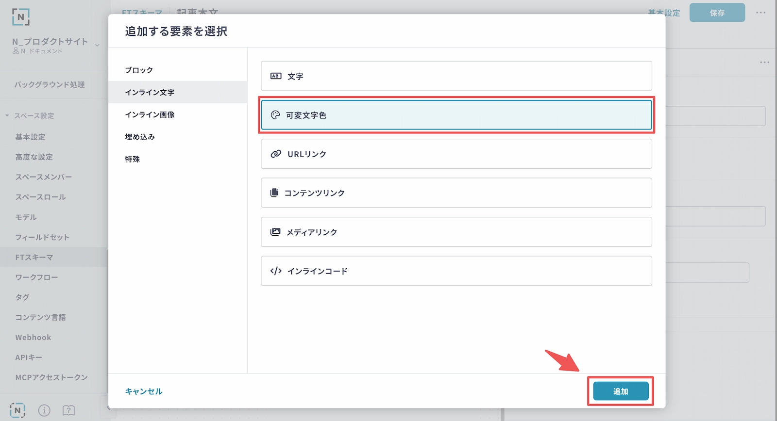 ここで登録した色がコンテンツ編集画面で利用できます。