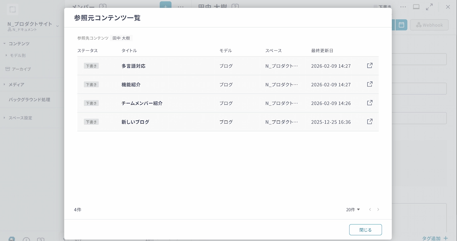 最終更新者 | スペースメンバー | 指定したスペースメンバーが最終更新者であるコンテンツ |