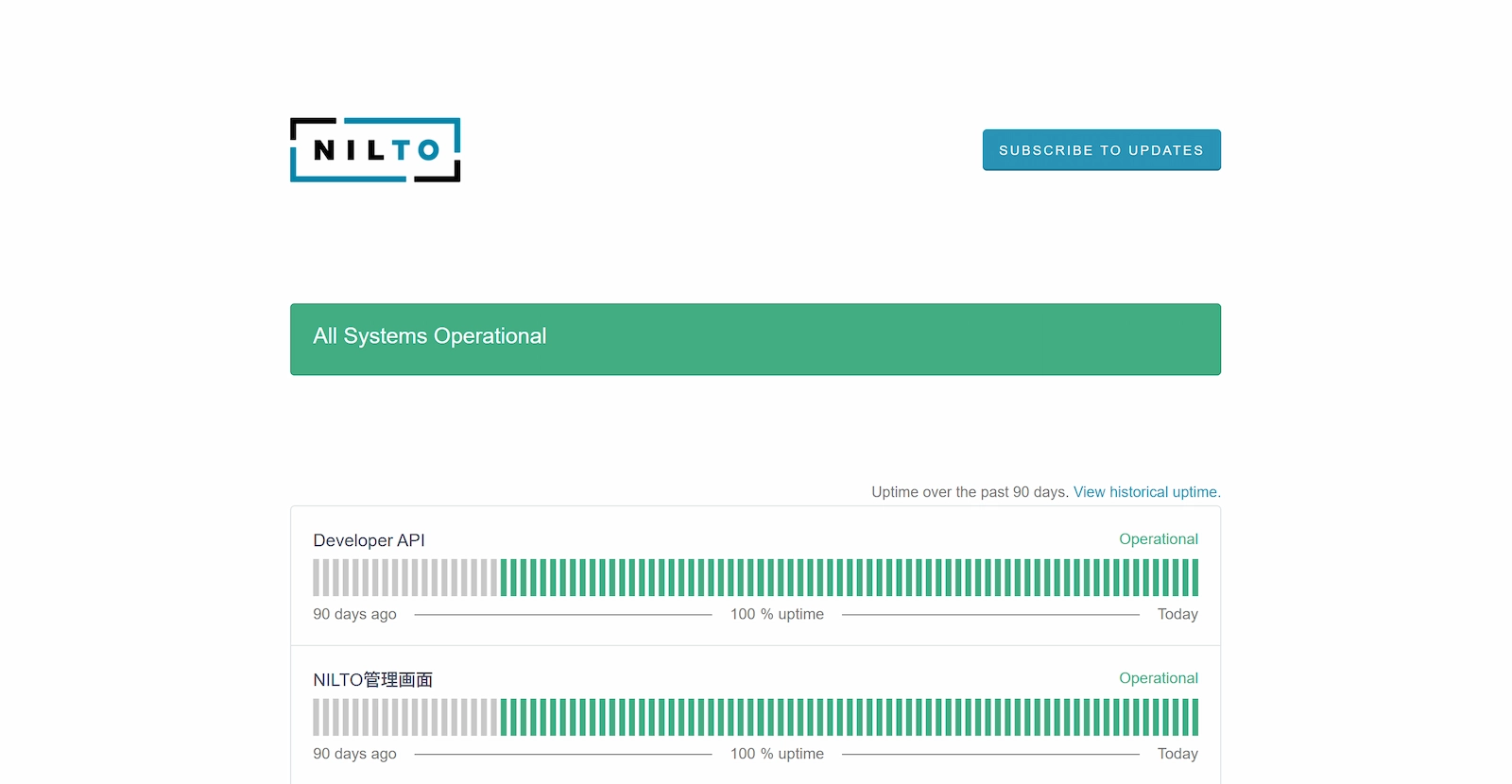 NILTOの各サービスの稼働状況をリアルタイムで確認できるページです。