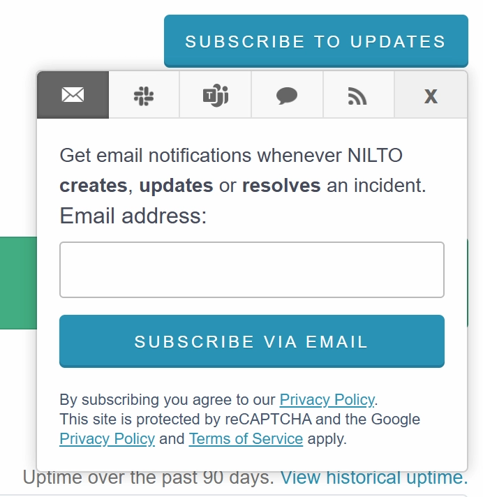 インシデントおよびメンテナンスに関する情報を、リアルタイムで受け取ることができます。