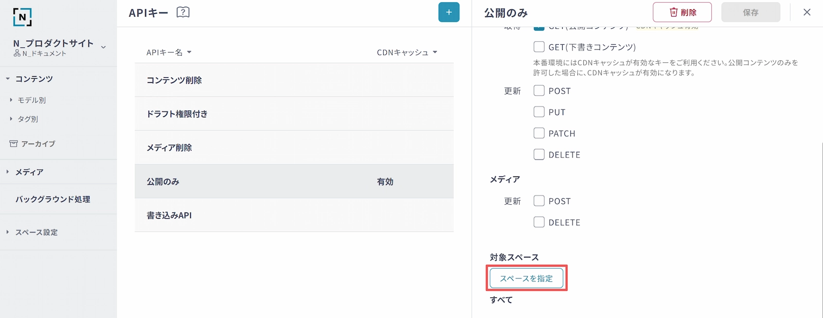 APIキーに対象スペースを指定