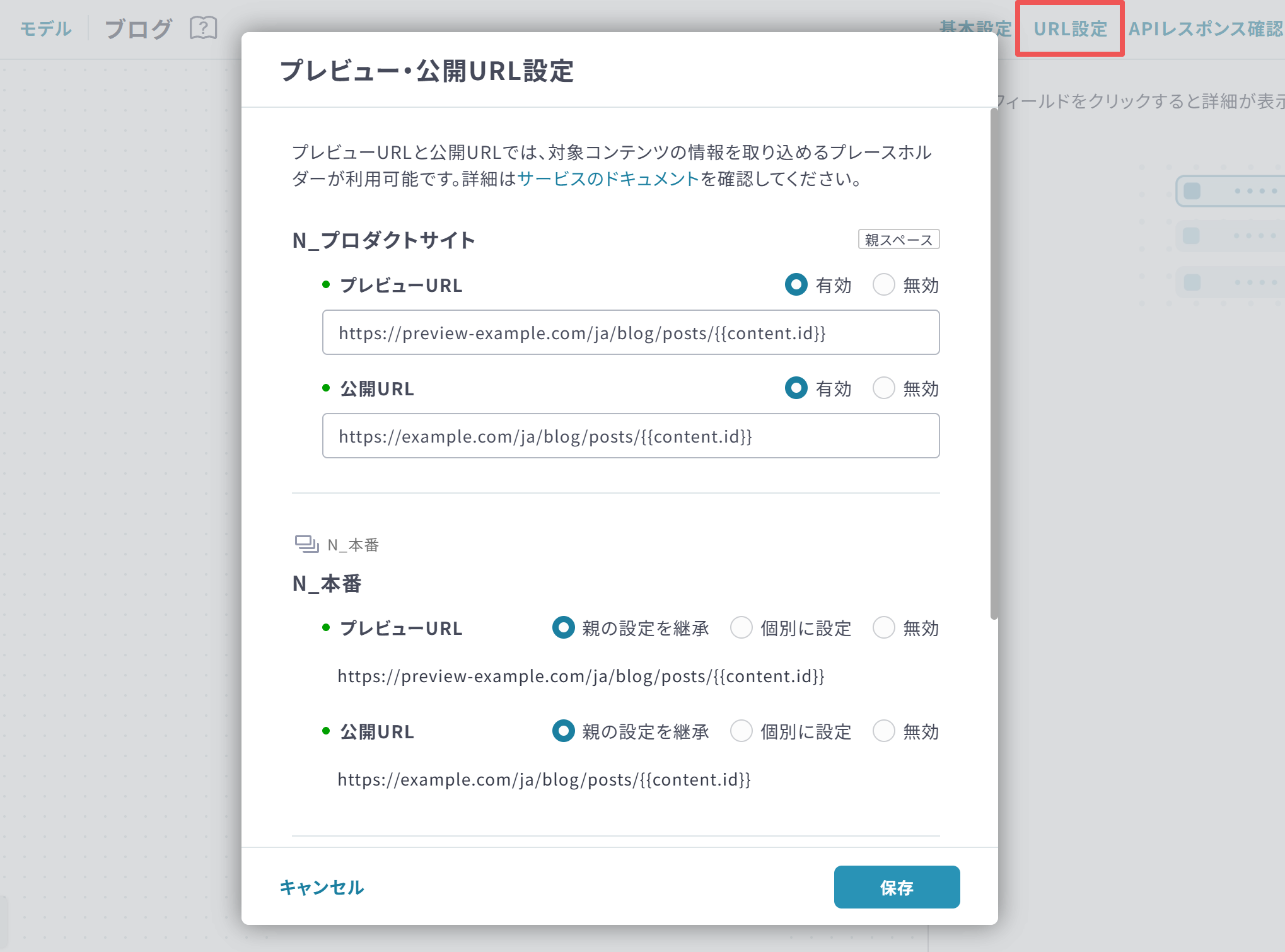 - 親の設定を継承: 親スペースのURL設定をそのまま利用する