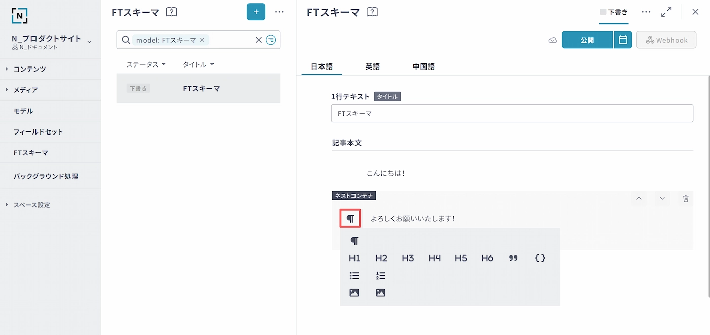 FTスキーマで定義したツールバーを利用して書式を適用し、記事作成を行います。