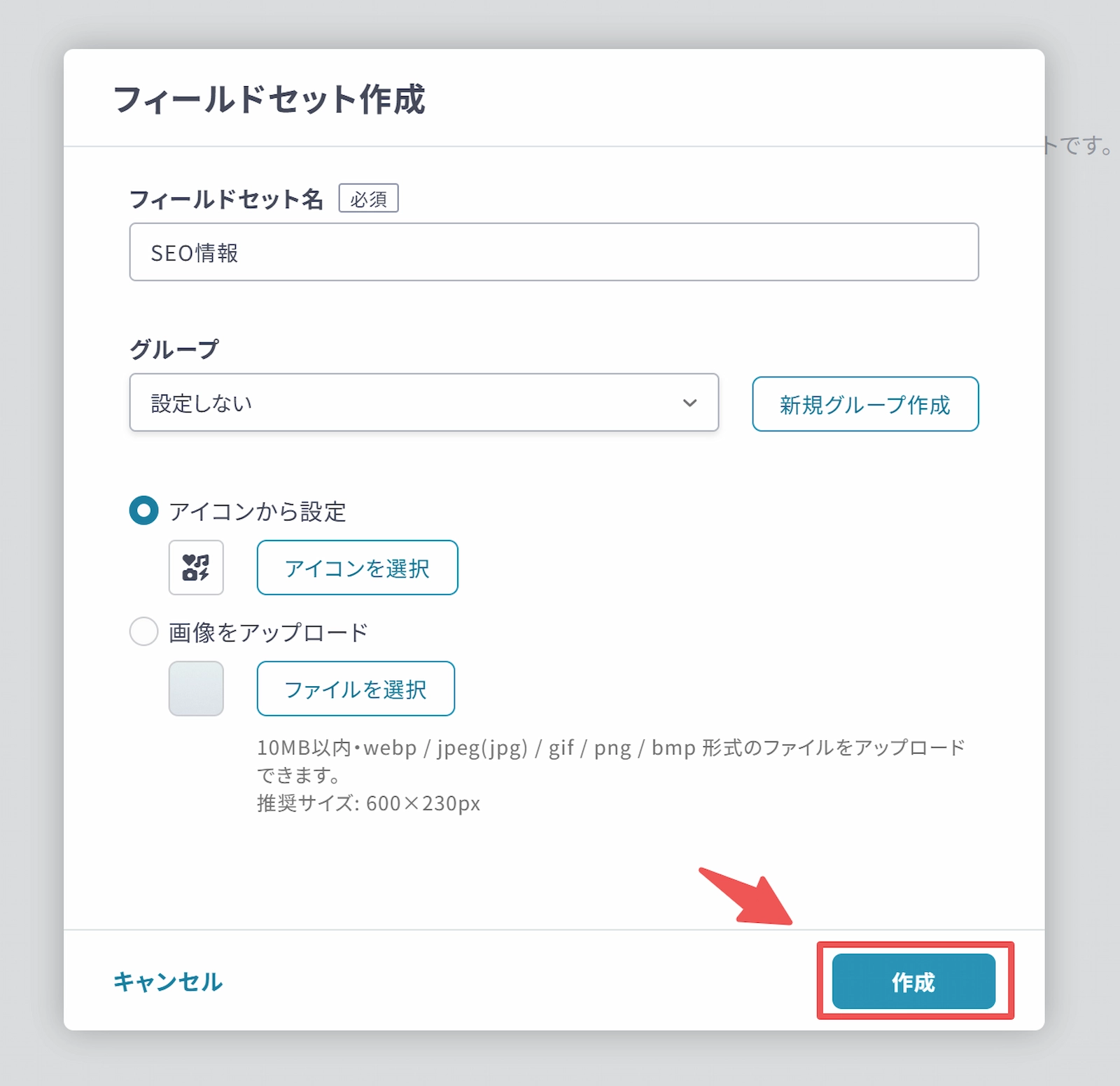 その際にフィールドセット名の設定が必要になりますが、サムネイルはこの場では任意です。後から設定することも可能です。