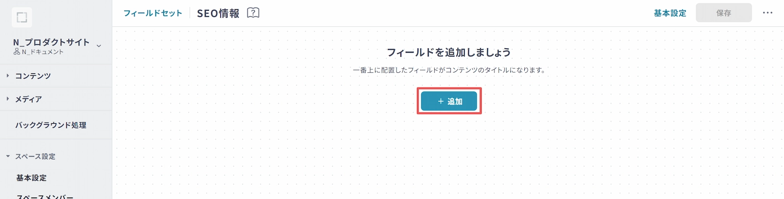 また初回作成時は画面中央の[+フィールドセットを新規作成]からも可能です。