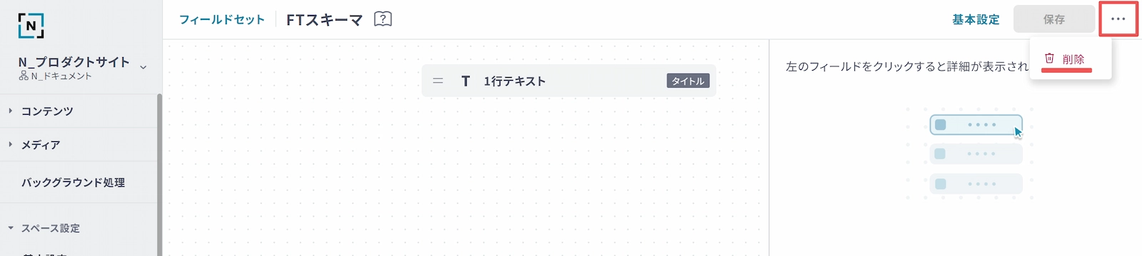 またフィールドセット編集画面右上の「・・・」からも「削除」をすることができます。