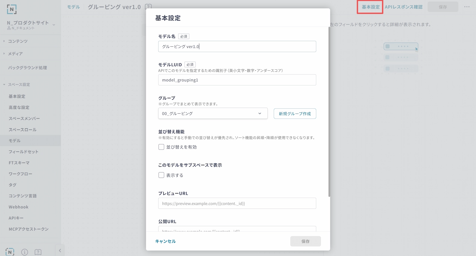 モデルの基本情報からモデル名、モデルLUIDの再設定が可能です。