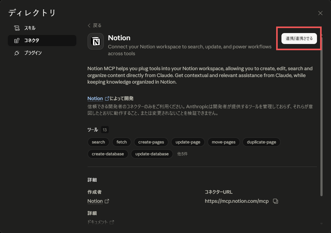 また、AIツール側からではなく、Notionアプリの Settings → Connections → Notion MCP から接続を始める導線も用意されています。