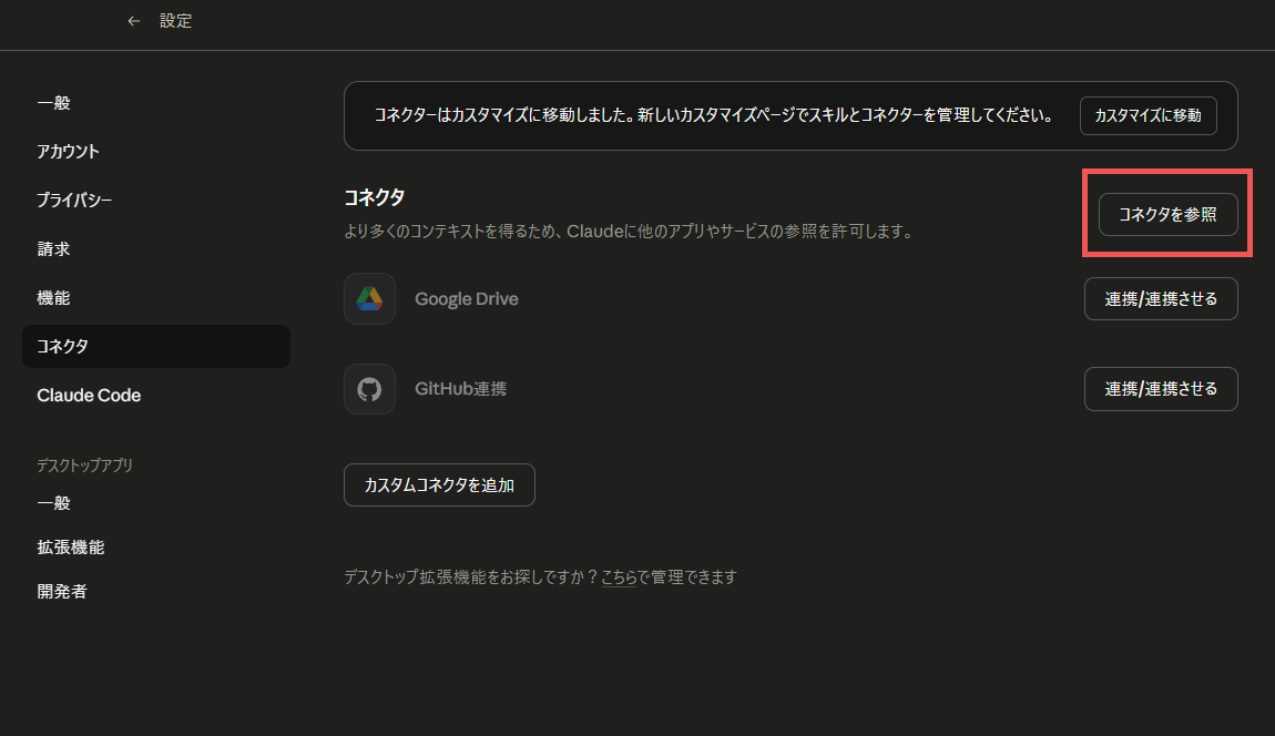 1. 設定からコネクタを開き、コネクタを参照を選択