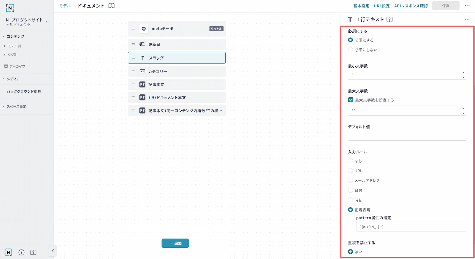 入力フィールドに様々なルールを設定することで、意図しない値が登録された状態でコンテンツ公開してしまうことを防止することができます。